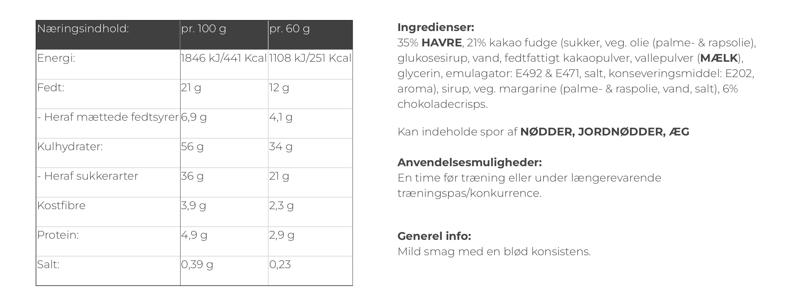 | Smag | Chokolade |
